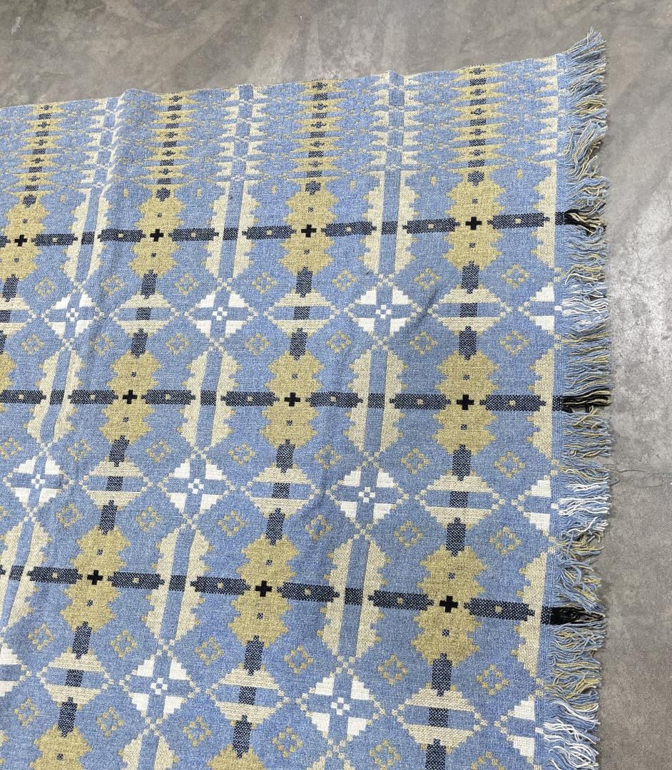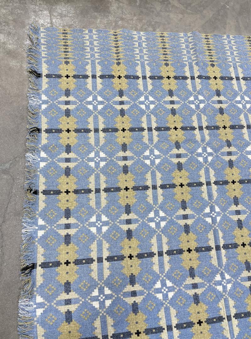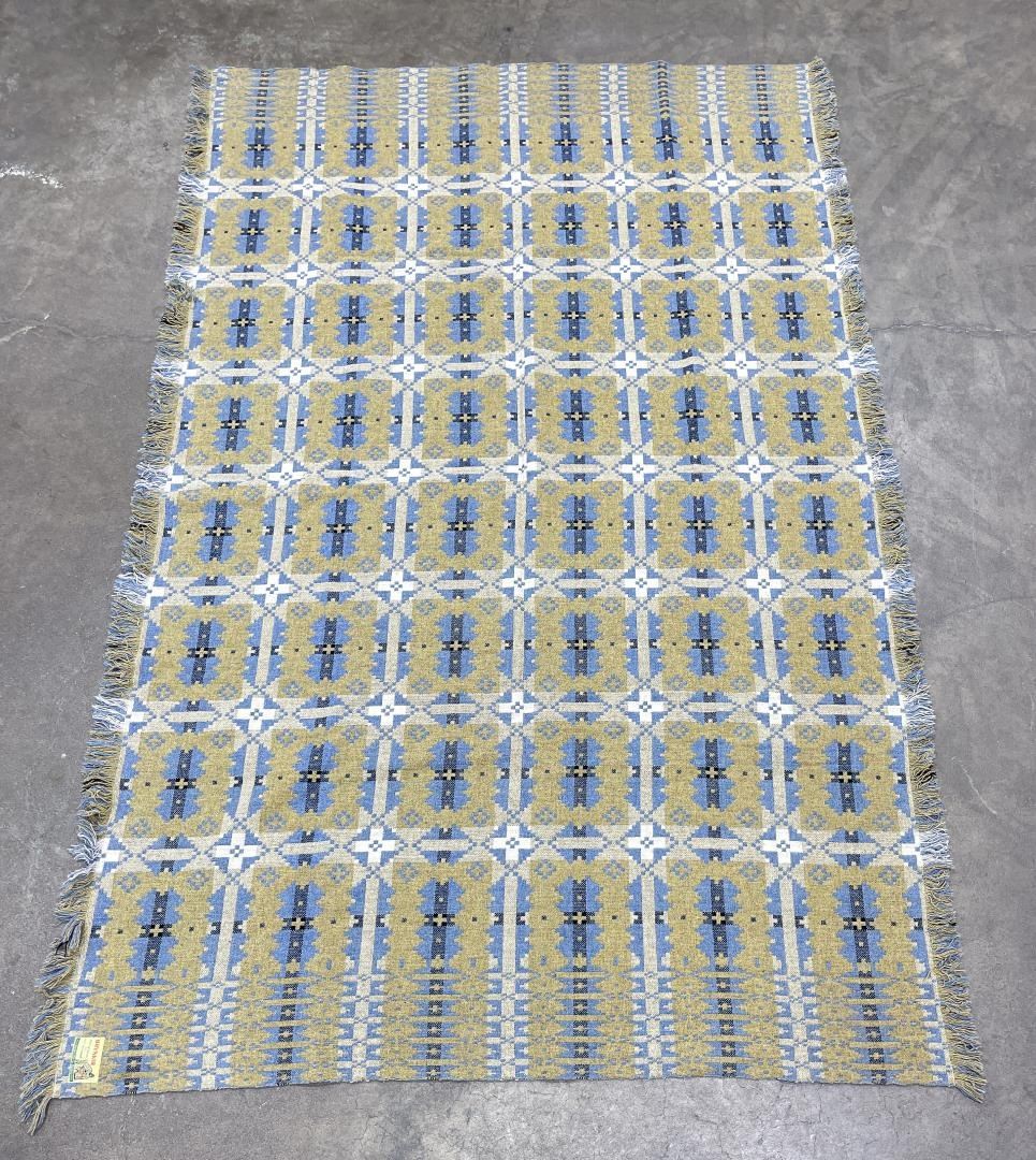 Very pretty handmade blanket. Made in Wales by Brynkir. 62.5" by 95".