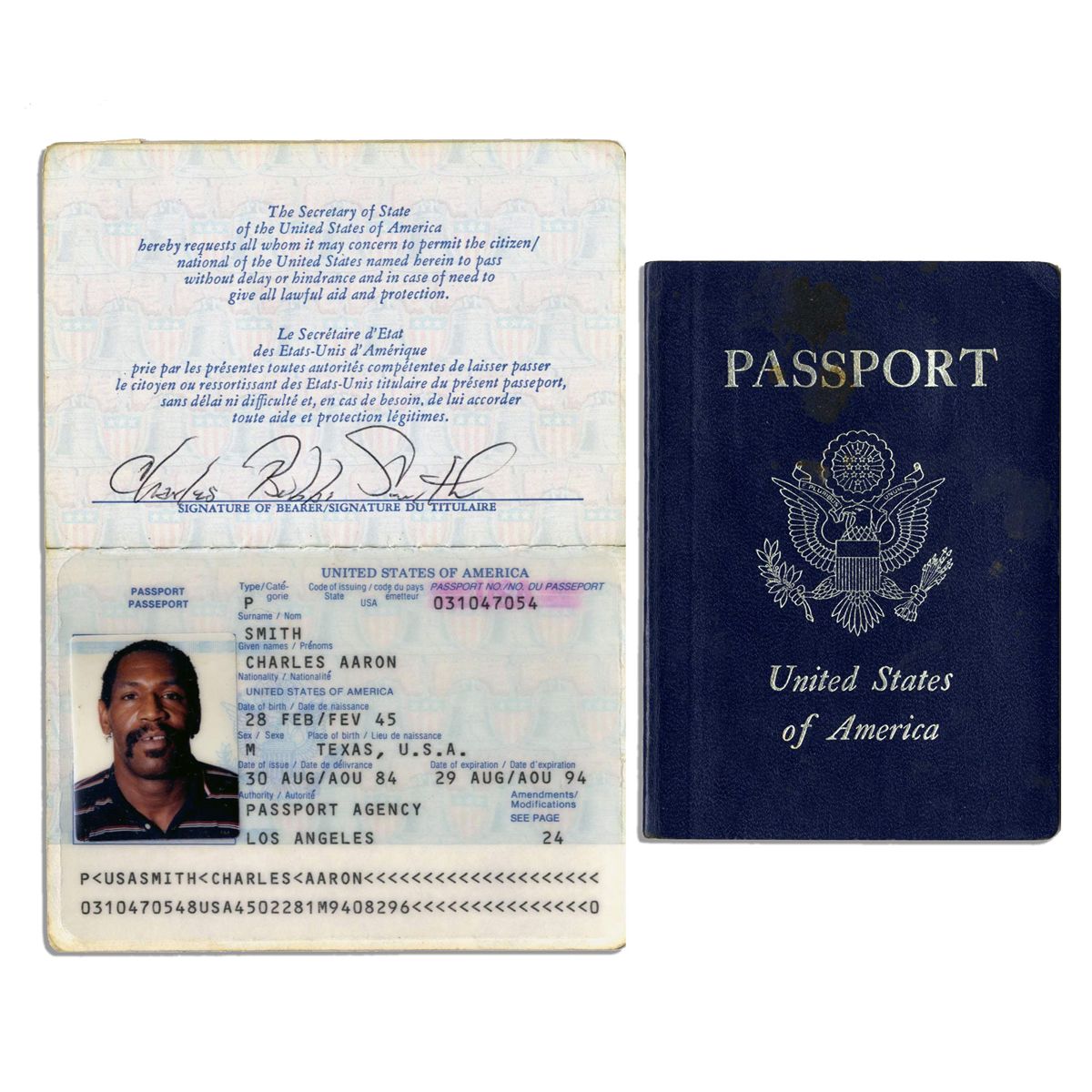Passport belonging to football great and movie star Bubba Smith, issued 30 August 1984. Smith, whose given name was Charles Aaron, signs as the bearer of the passport using his nickname: ''Charles Bubba Smith''. The Amendments page clarifies: ''The bearer is also known as Bubba Smith''. Passport, measuring 3.5'' x 4.75'', includes Smith's personal information, and French and Japanese entry stamps as well as a Japanese visa. Soiling to cover, else near fine. Accompanied by an LOA from the Trustee of the Bubba Smith Estate.