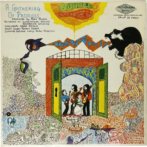 <B>Bubble Puppy "A Gathering Of Promises" Promo LP International Artists 10 (1969).</B></I> The very first of the four singles released by the psychedelic rock group, "Hot Smoke and Sassafras," in 1968-69, charting for 12 weeks on Billboard's Hot 100, peaking at #14. Their only album is a much sought-after rarity, even in its more common commercial green label. But this is a white label promo copy, and it's a very nice copy, especially the disc. Condition: EX 7/ NM 8.