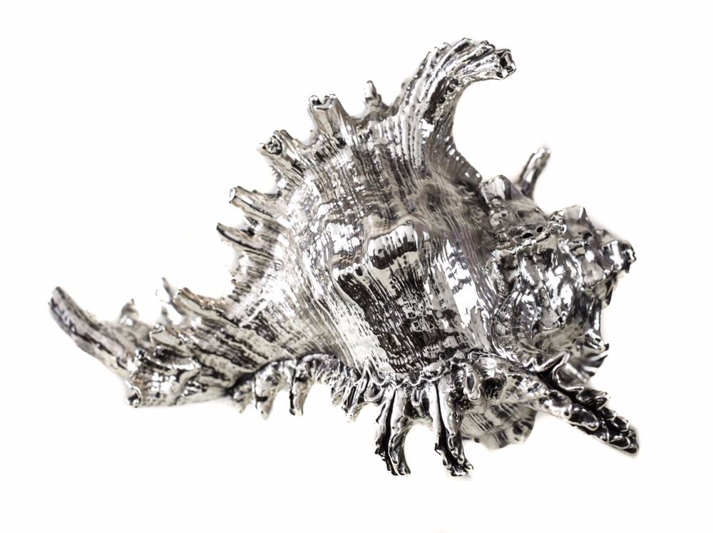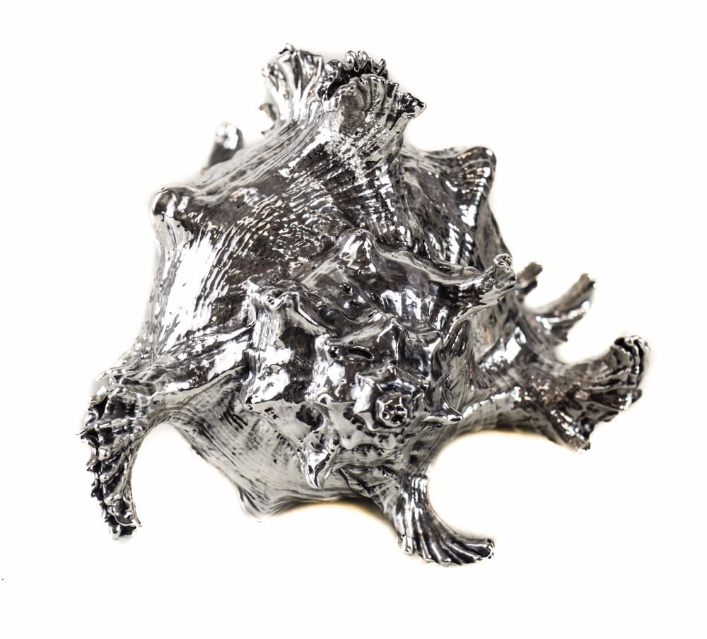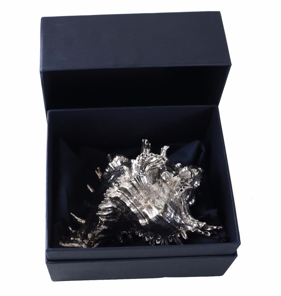 A very large konch shell by Buccellati. Applied silver overlay to an impressive specimen. With original box and dust bag. 20th Century.
