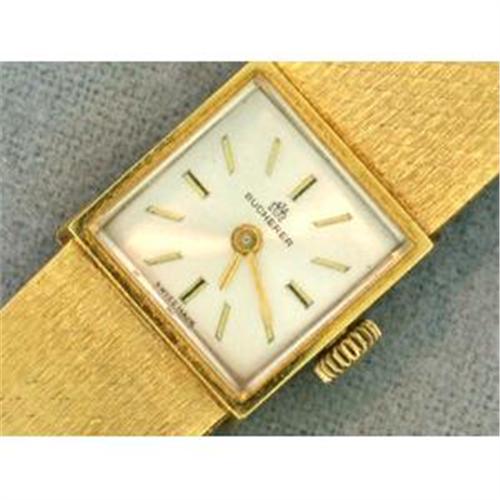 <tr><td>Title:Bucherer 18k 17 Jewels Square face Lady's watch</td></tr>