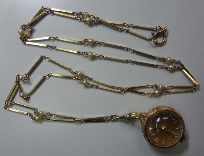 Not Running, unable to open for Serial #, Beautiful Vintage Chain & Watch, Swiss made. Est. $80.00 - $90.00
