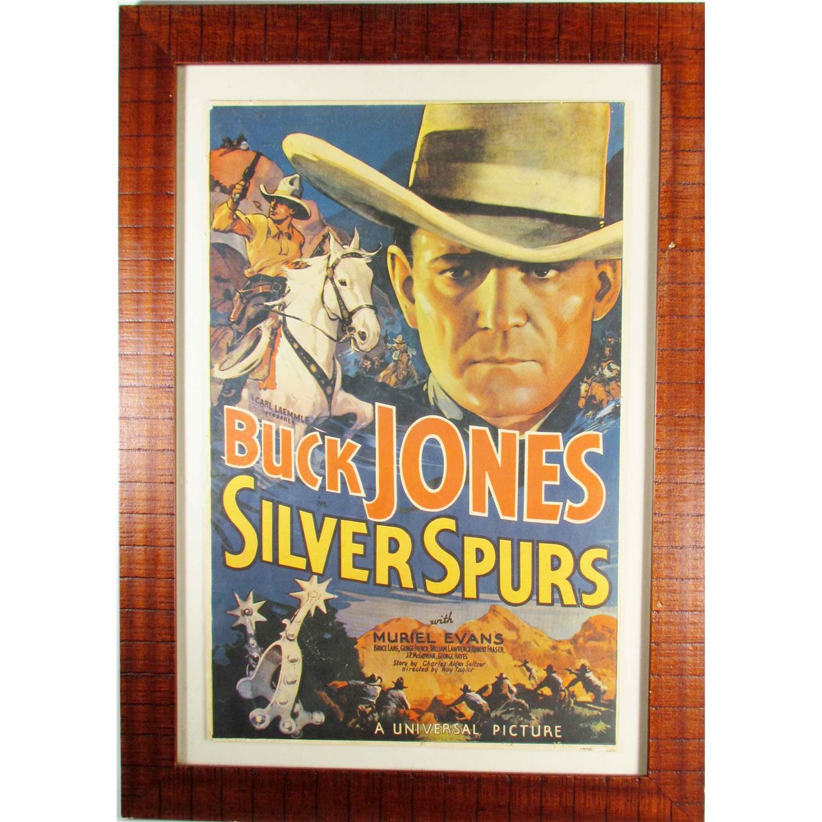 Buck Jones in Silver Spurs Movie Poster. Excellent color and graphics framed under glass. 18 X 28 inches.
