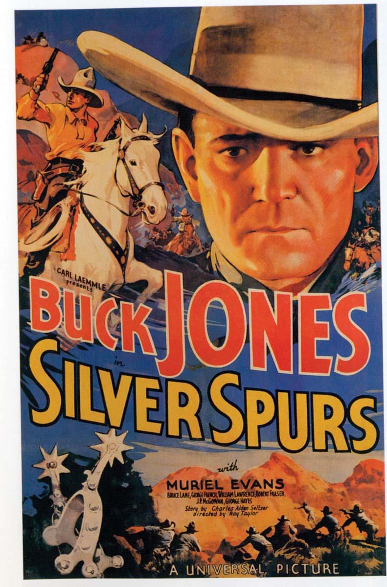 Very impressive long two-tone Batwings with hundreds of nickel studs on perimeter and around the buck-stitched, scalloped pockets. Sterling conchos adorn the floral carved billet as well as slotted and domed conchos down each leg. Superb condition, c 1930s. PROVENANCE: Includes Certificate of Authenticity dated 1/13/2001 from Buck Jones’ grandson, Buck Beery, stating that they came through the estate of his only child/daughter, Maxine Jones Firfires