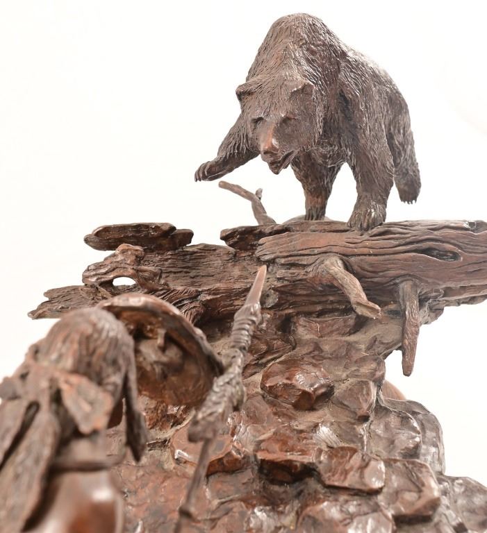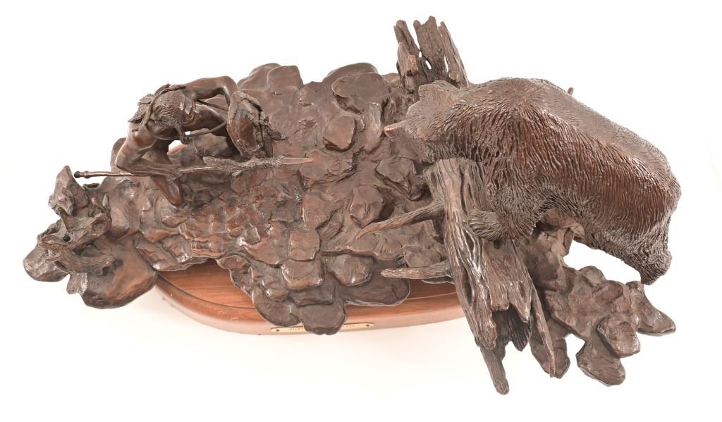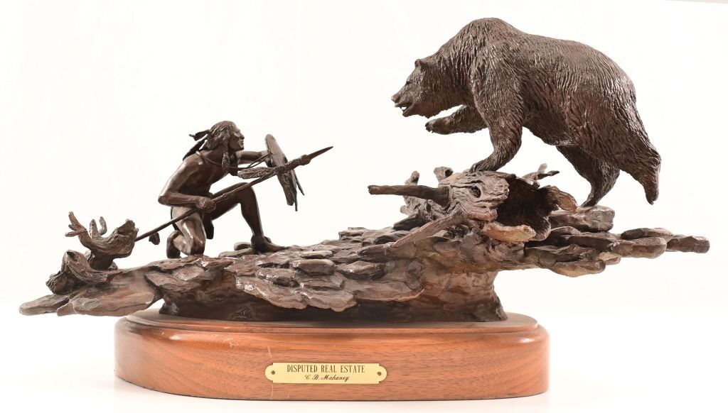 "Disputed Real Estate" bronze numbered 9/37, signed by C.B. "Buck" Mahaney 1987. Measures 9" x 11" x 18"
