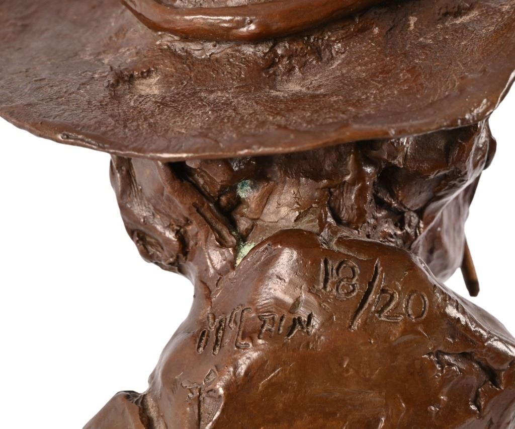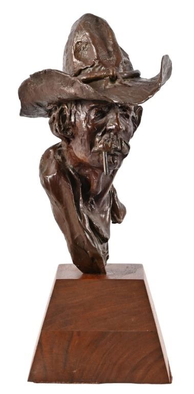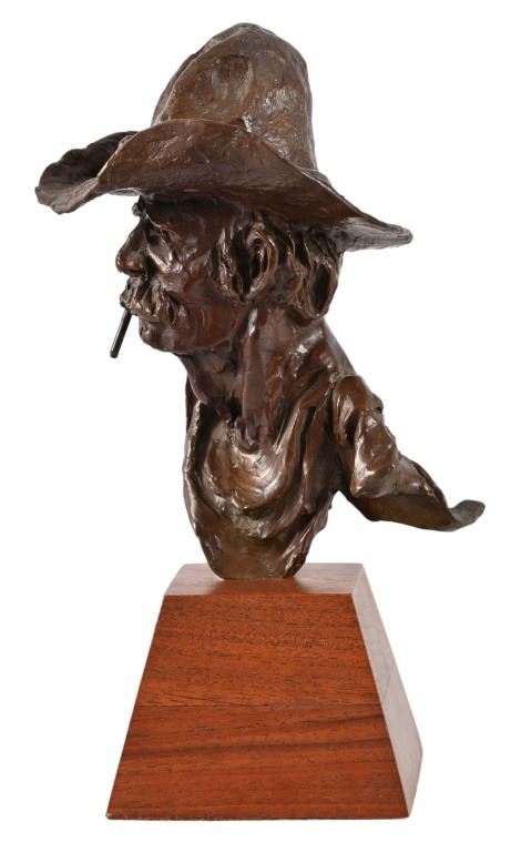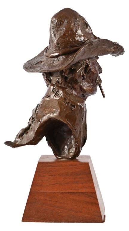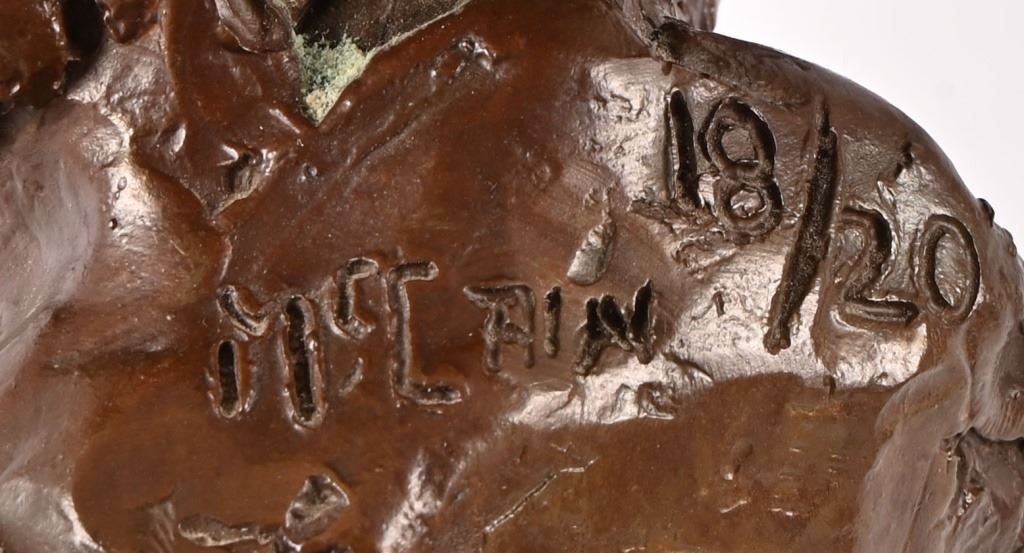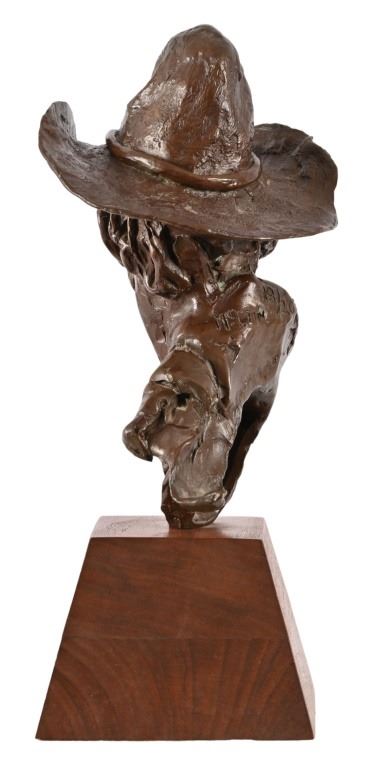 Numbered 18/20, on custom oak base. Measures 4.5" x 6.5" x 11"