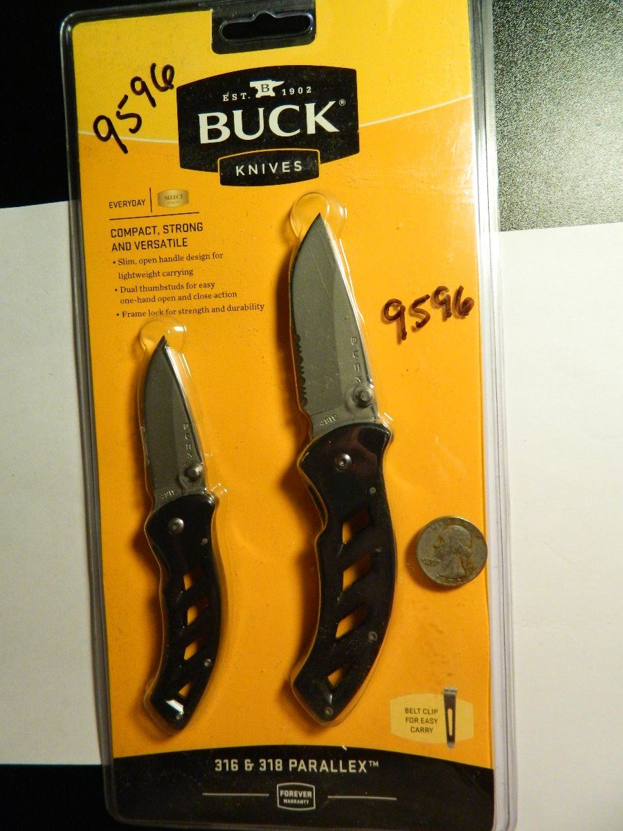 Parallex Combo - Contains models BU316GY Parallex 2.3 and BU318GYX Parallex 3.0. Both knives have matte finish 420HC stainless partially serrated blade, gun metal gray finish handles, and matte finish stainless pocket clip.