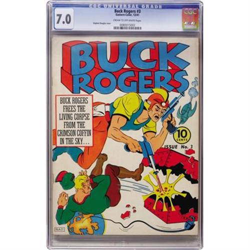 <B>Buck Rogers #3 (Eastern Color, 1941) CGC FN/VF 7.0 Cream to off-white pages.</B></I> One of the nicer copies around of this early comic book. Stephen A. Douglas cover art. Overstreet 2007 FN 6.0 value = $345; VF 8.0 value = $719. CGC census 6/07: 1 in 7.0, 3 higher.<BR><BR><b>Shipping:</b> Comics - Slabbed (certified) (<a target="_blank" href="http://www.heritageauctions.com/common/shipping.php">view shipping information</a>)