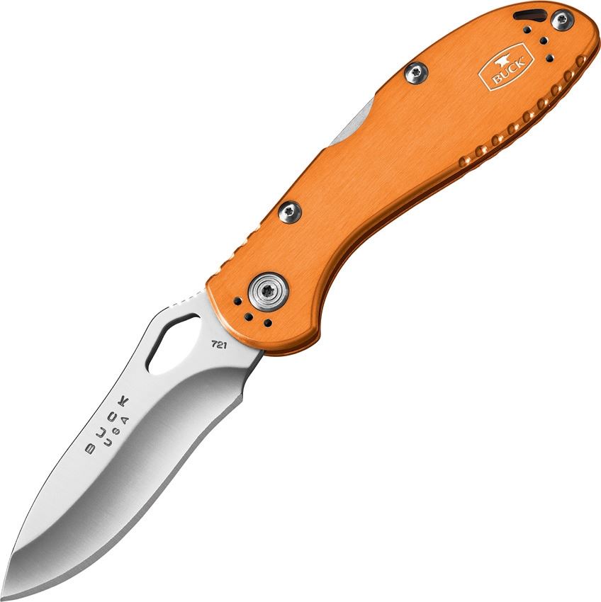 4 1/4" closed. 3 1/4" 420HC stainless drop point blade with thumb hole. Orange aluminum handles. Four way reversible stainless pocket clip.