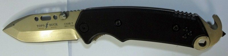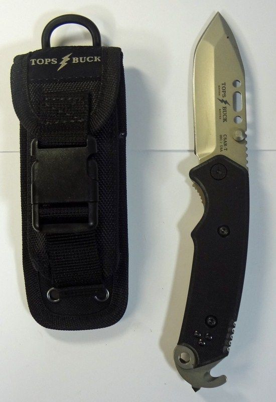 Buck Tops Buck CSAR-T Responder. Stainless steel blade, Modified tanto blade style with Zirblast finish, linerlock, reversible stainless steel tip=up carry pocket clip. EST:$100-$125