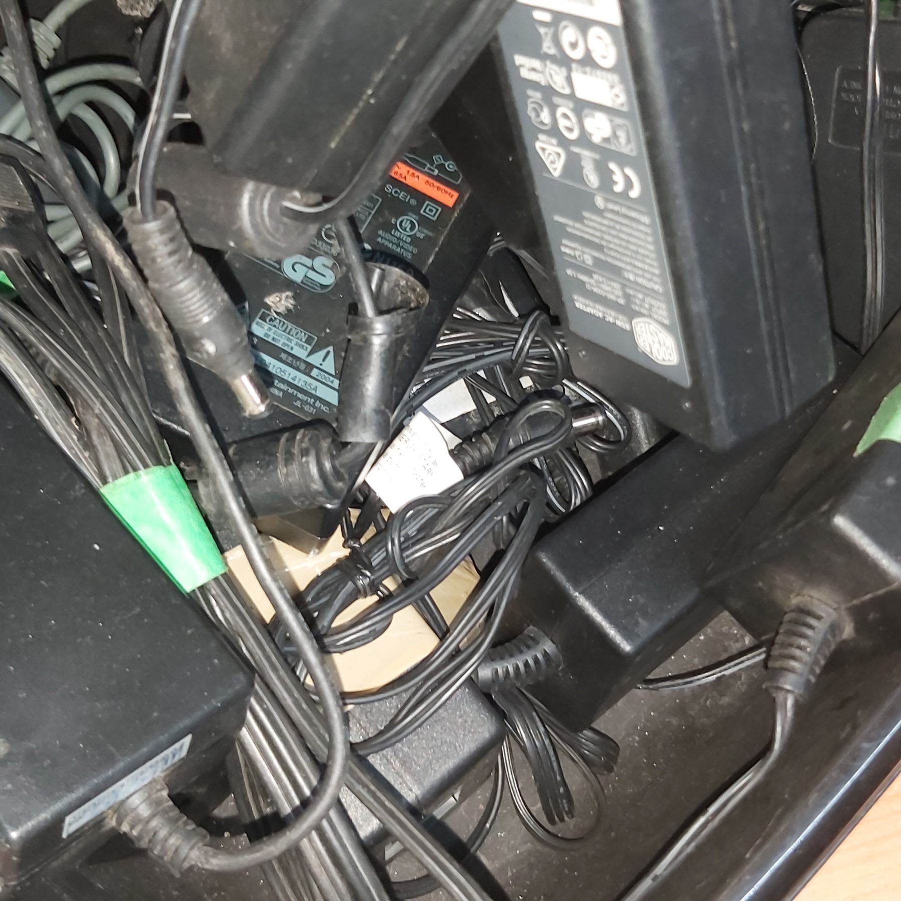Bucket\Tote of Power Adapters | Cords