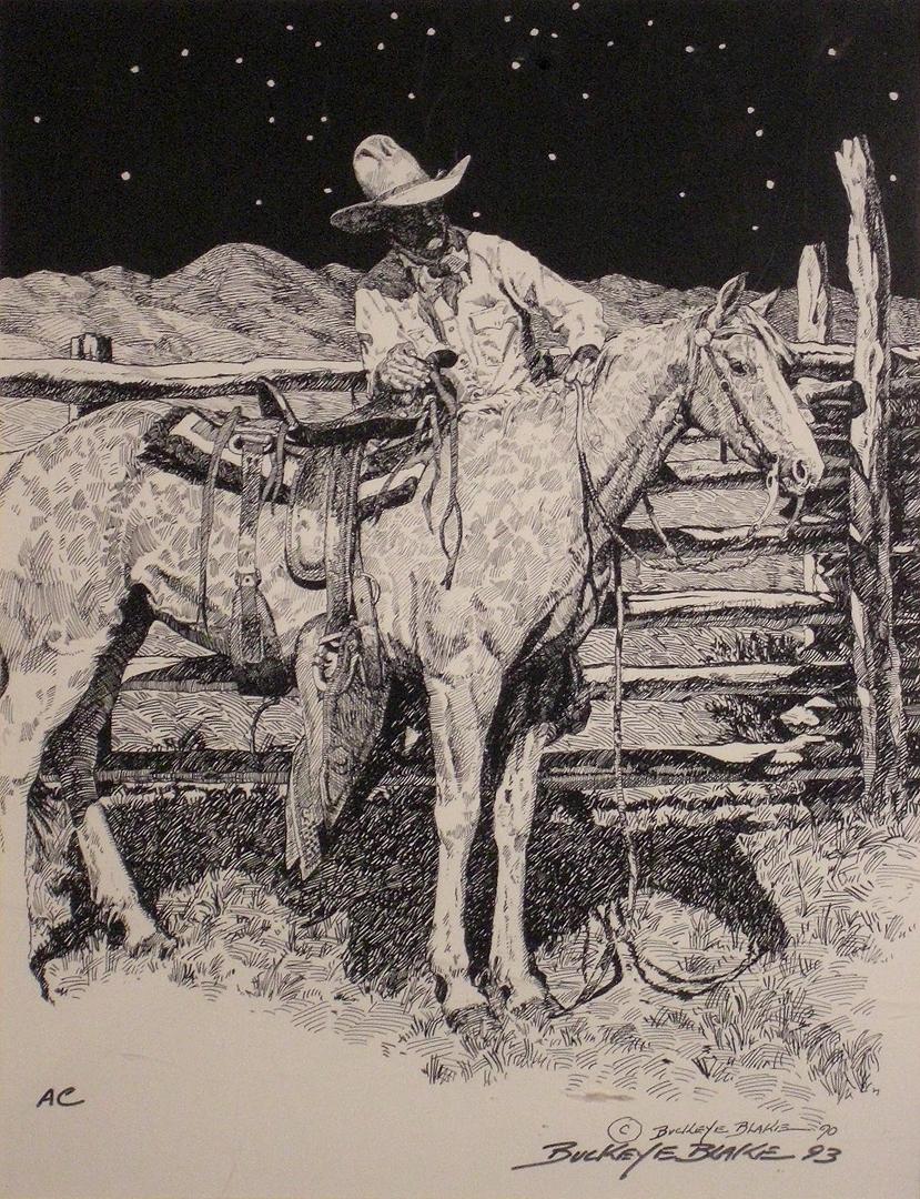 Buckeye Blake (b.1946) "Palomino Moon", Print, Artist Copy, signed and dated by Buckeye in 1993. This print is available only on the secondary market and is unusual in that it is a nocturne, less common for this widely collected artist. Dimensions - 19 1/2" x 14 1'2".