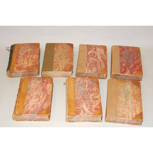 Buckingham, J.S.. The Eastern and Western States of America - 3 Volumes. America, Historical, Statistic and Descriptive - 3 Volumes. The Slave States of America (vol. 2 only). London: Fisher, Son & Co., 8vo - over 7¾" - 9¾" tall. Hard Cover. Ex-Library. Fair Condition. A total of 7 volumes bound in matching 3/4 leather & marbled paper, marbled page edges all around with marbled endpapers. ***The Eastern and Western States of America (1842) complete with 15 double page engravings (including one of Niagra Falls). Covers detached on 2 volumes, taped on the other. Lacks one backstrip, one taped. ***America Historical (1841) with map, engraved plate & text illustrations throughout. Covers detached on one volume, taped on the others. ***Slave States with 4 engraved plates. Books have occasional damp marking.