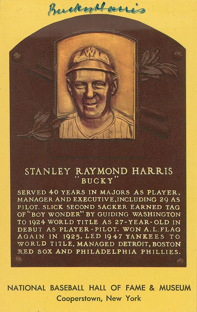 Gold Hall of Fame plaque card signed across the top in blue felt tip. In fine condition, with minor rubbing of finish along top (done for better signature adhesion).