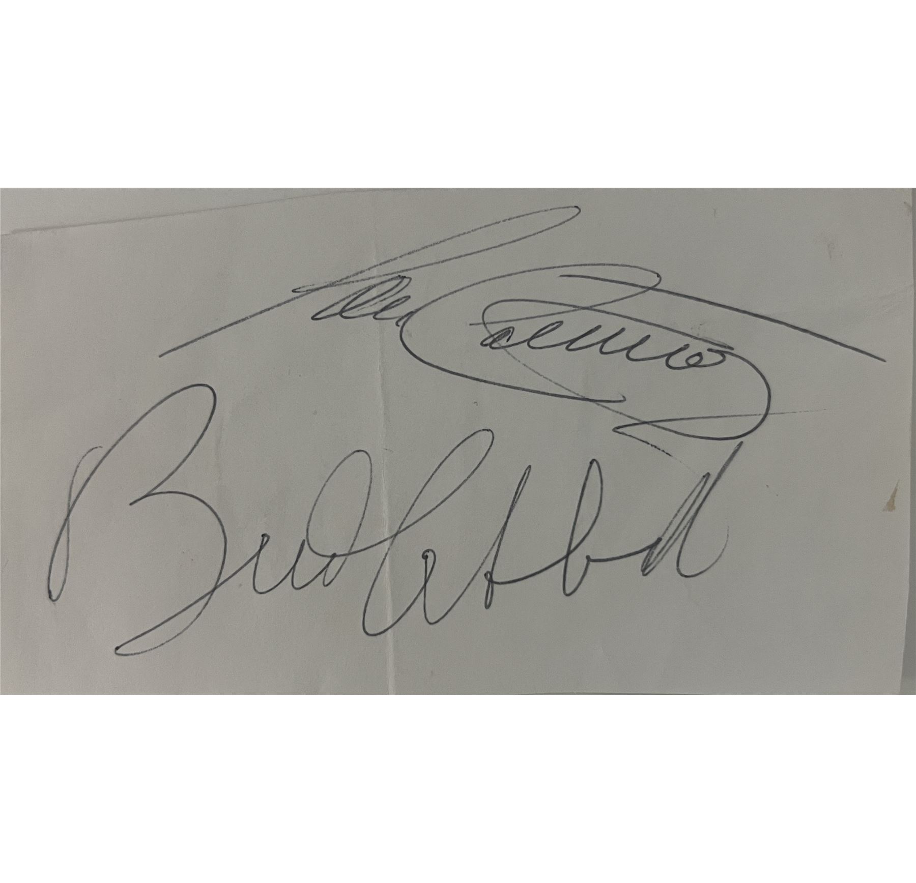 Bud Abbott and Lou Costello original signatures. 2x5 inches