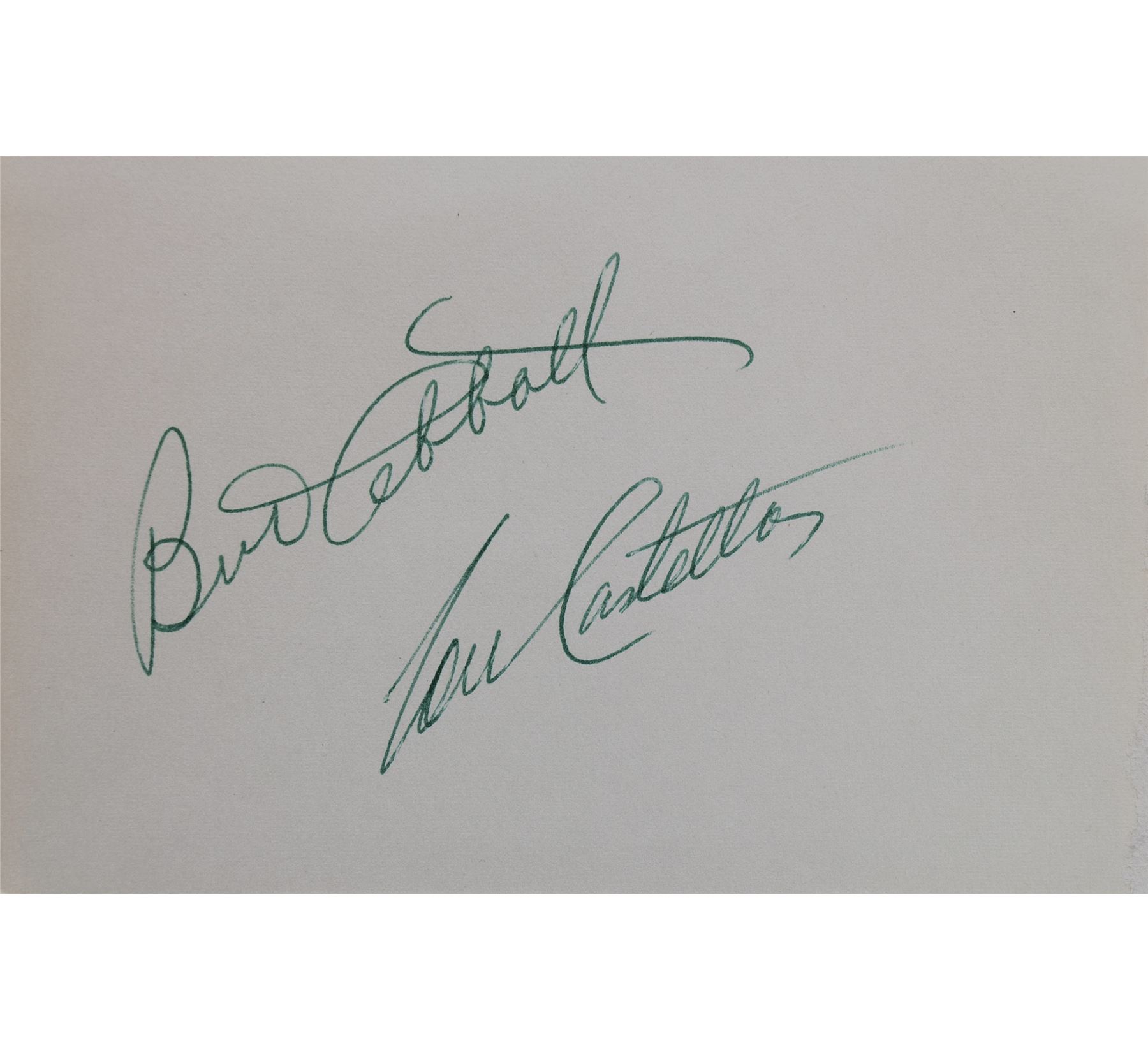 5 1/4 in. by 3 1/2 in. Signature slip signed: Bud Abbott and Lou Costello.