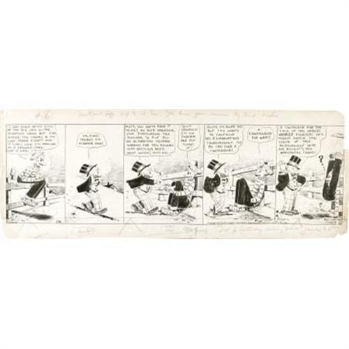 <B>Bud Fisher - Mutt and Jeff Daily Comic Strip Original Art, dated 6-25-27 (H. C. Fisher, 1927).</B></I> With a manager like Jeff, Mutt is sure to be KO-ed every time he enters the boxing ring. The image area of this daily measures 29" x 8.5". There is paper tanning, edge wear, and some light soiling; otherwise the condition is Good. <I>From the Jim Logan Collection.</B></I><BR><BR><b>Shipping:</b> Flat Material, Large (<a target="_blank" href="http://www.heritageauctions.com/common/shipping.php">view shipping information</a>)