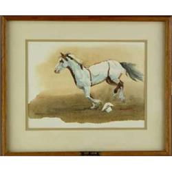 Bud (Erwin E.) Helbig (1919) (Montana) Watercolor. "Last Laugh." Sight Size 10" x 13". signed lower mid right. Estimate $500 - $750.