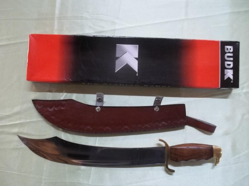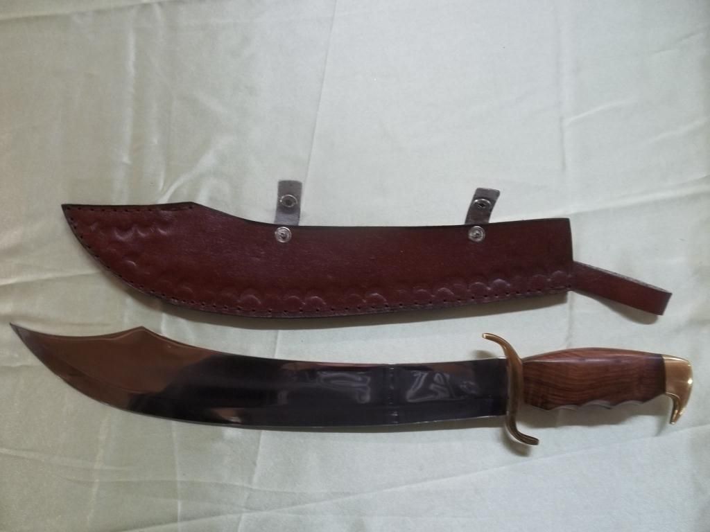W/Stainless Steel Extra Wide Blade, Wood Finger Grooved Handle & Brass Guard & Leather Sheath