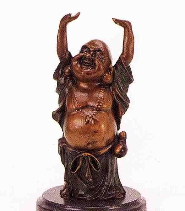 "Buda" Bronze Sculpture - After Wang - Beautiful Color Patina - Mounted On A Fine Italian Marble Base - Beautifully Detailed - Signed - Mint Condition - 11"H X 6"W - Lost Wax Cast Bronze