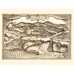 A kép Leunclavius Neuwe Chronica címu muvében (Frankfurt, 1595) megjelent kompozíció felhasználásával készült Copperplate panoramic view of Buda and Pest from the east, from Braun-Hogenberg: Theatri praecipuarum totis mundi urbium (Cologne, 1617.) Framed.