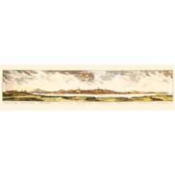 The largest size view of Buda and Pest, copperplate printed from three plates. It was published in "Notitia Hungariae Novae Historico Geographia...(Vienna, 1737) of Mátyás Bél. Probably coloured in the 20th century. In pass-partout.