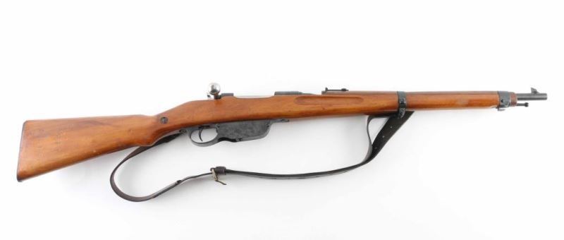 Austro-Hungarian military straight pull bolt action rifle imported by CAI, St Albans VT. Carbine or Stutzen length, features blued finish, bolt assembly in the white, wood stock with semi pistol grip shaped wrist, 19.5" barrel, side mounted sling swivels, bayonet lug, stacking hook, blade front sight (dovetailed into base soldered onto barrel), flip-up ladder rear sight, manual safety, Rear sight is shorter carbine type (missing the stop screw), front sling mount is non-swivel type with large fixed loop. Bore is fair to good condition, dark in grooves with strong rifling. Retains 90% arsenal re-blue with minor handling marks. Stock is excellent condition as reworked, varnished finish, several dark spots or blemishes, light scuffing on handguard. Importer has stamped serial number on receiver, matching the original number on barrel, bolt (marked with electro-pencil), stock (new number applied, previous number stamped thru). Chamber marked "S". Includes fair condition brown leather sling, stitched together from two pieces. Condition is NRA Very Good (arsenal rebuild) *** C&R Firearm ***