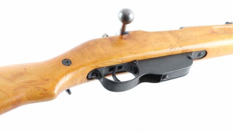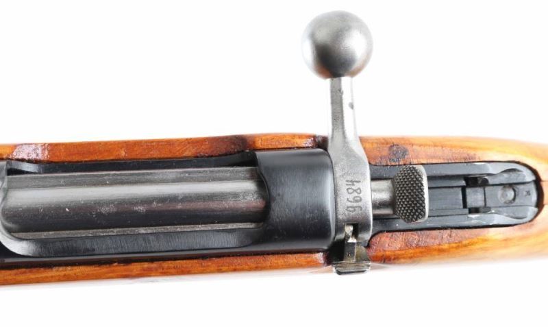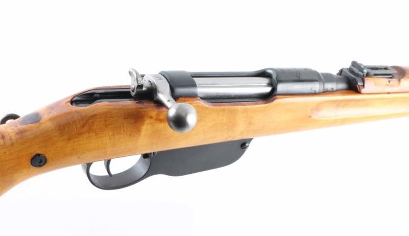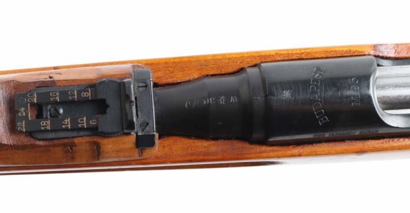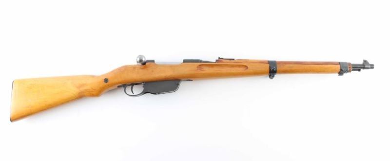 Austro-Hungarian military straight pull bolt action rifle imported by CAI, Georgia VT. Carbine or Stutzen length, features blued finish, bolt assembly in the white, wood stock with semi pistol grip shaped wrist, 19.5" barrel, side mounted sling swivels, bayonet lug, stacking hook, blade front sight (dovetailed into barrel band), flip-up ladder rear sight, manual safety, Rear sight is shorter carbine type, front sling mount is non-swivel type with large fixed loop. Bore is fair to good condition, dark in grooves with strong rifling. Retains 90% arsenal re-blue with minor handling marks. Stock is excellent condition as reworked, lighter color wood with varnished finish, several dark spots or blemishes, repair visible at rear of handguard. Importer applied serial number on left side of receiver. Original number on barrel is matched in electro-pencil on bolt, and stamped in butt. Chamber marked "S". Condition is NRA Very Good (arsenal rebuild) *** C&R Firearm ***