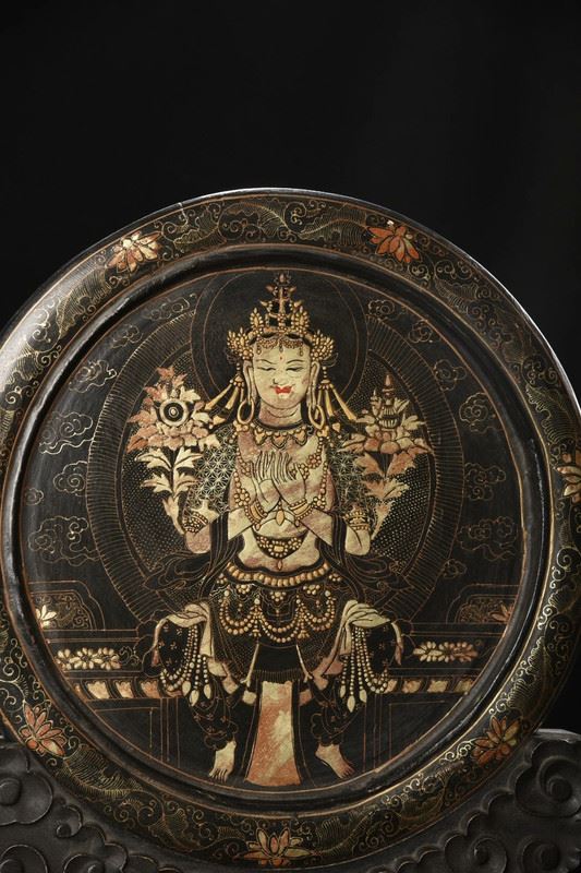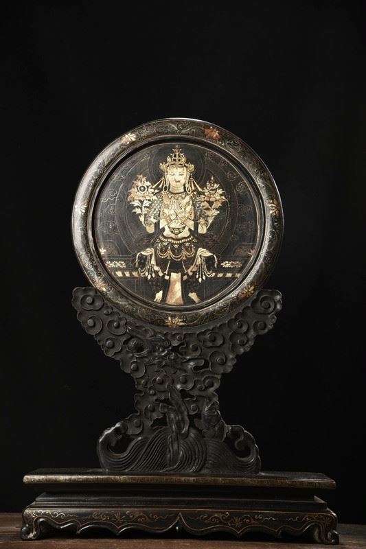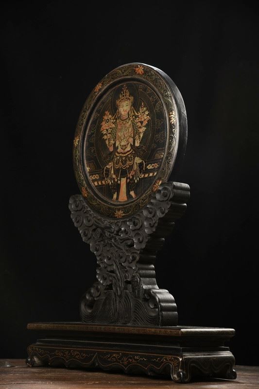 This Buddha figure screen is characterized by its exquisite carving craftsmanship and profound religious symbolism. The Buddha in the center is vividly portrayed, embodying peace and compassion, while the surrounding decorations and details seamlessly integrate to enhance the visual impact. The base and supporting parts of the screen feature intricate floral carvings, demonstrating the superb skills of traditional Chinese art. It is a religious artwork with cultural value and artistic charm.