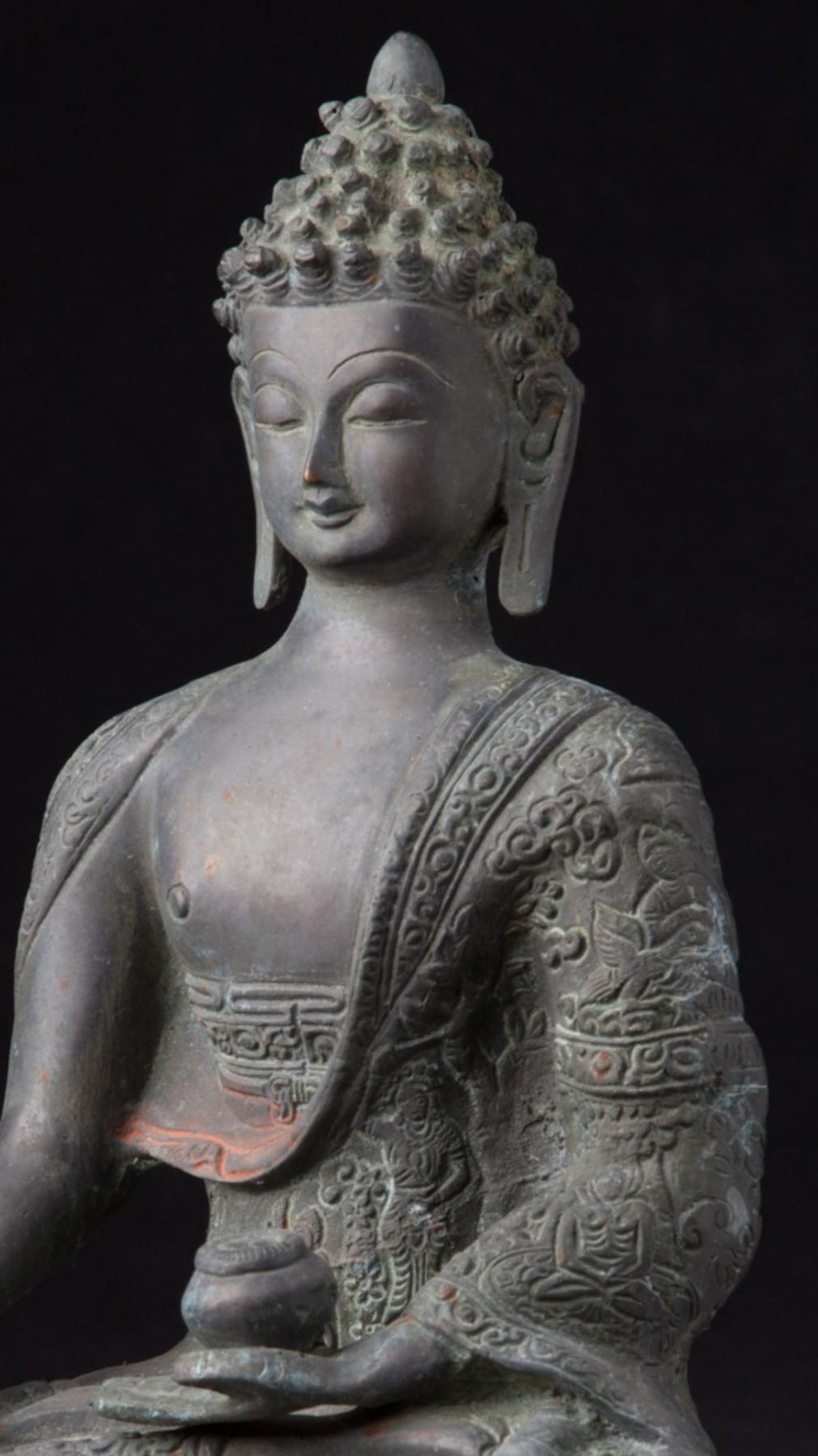 Buddha Statue......Material - Bronze....Height - 33 CM; Width - 21 CM....Deep - 14 CM; Origin - Nepal; Age- Unknown