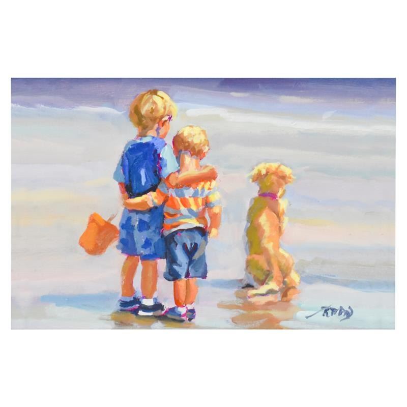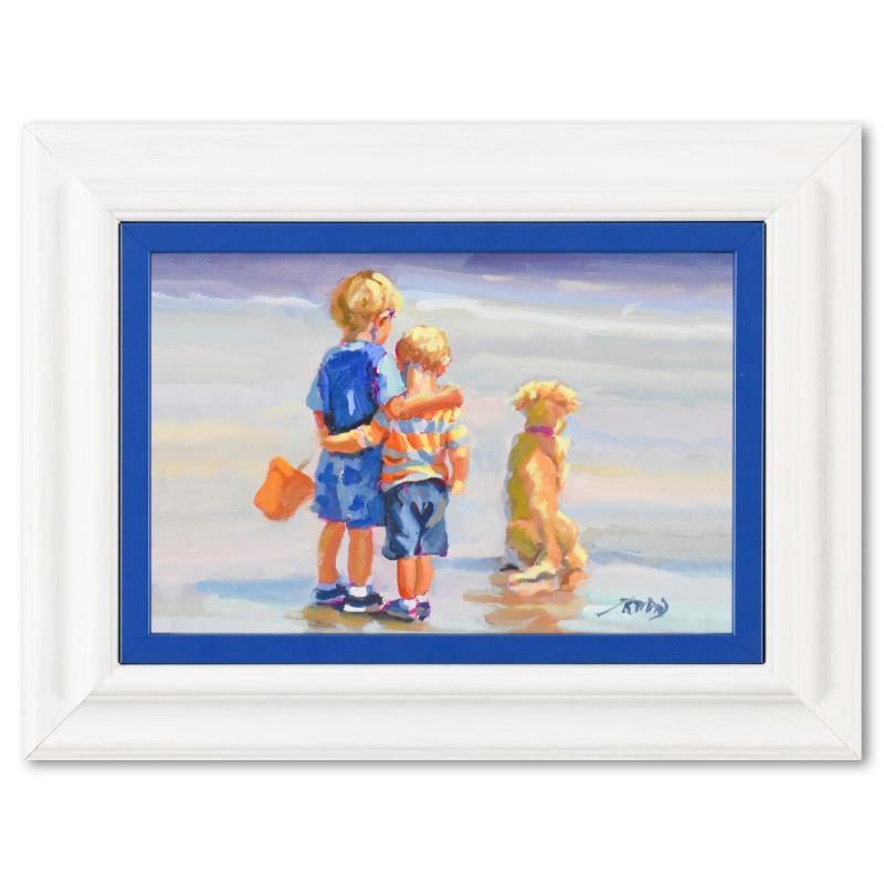 "Buddies" is an original acrylic painting on board by Lucelle Raad, hand signed by the artist. Includes Letter of Authenticity. Measures approx. 17" x 13" (frame), 11.5" x 7.5" (image).