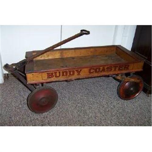 An all original Buddy Coaster with original disk wheels and hand break. Nice painted markings on the sides. It is unusual to find this wagon in original condition. A nice find.