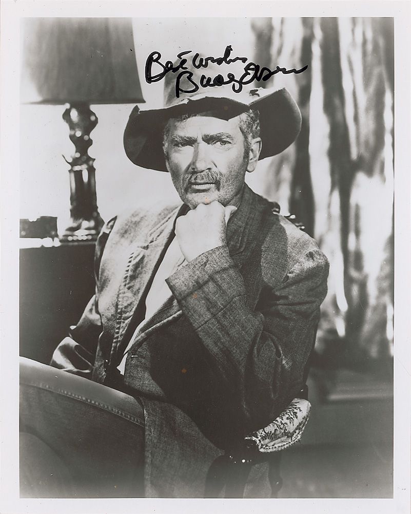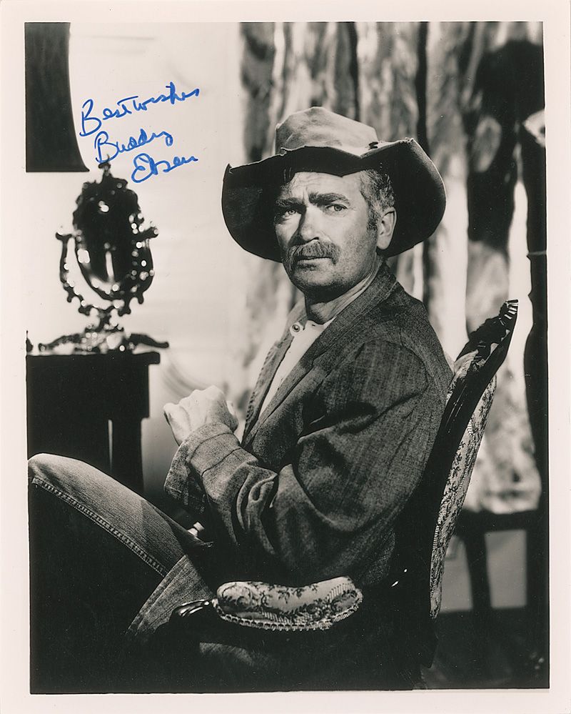 Two glossy 8 x 10 photos of Ebsen from The Beverly Hillbillies, each signed in blue or black felt tip “Best wishes, Buddy Ebsen.” In fine condition, with a few creases to one photo.