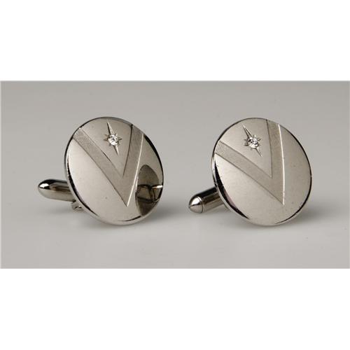 <B>Buddy Holly Stage-Worn Cufflinks with Diamond Insets.</B></I> A pair of stage-worn cufflinks with chevron pattern and diamond accents. In Excellent condition. <I>With COA from Maria Elena Holly.</B></I>