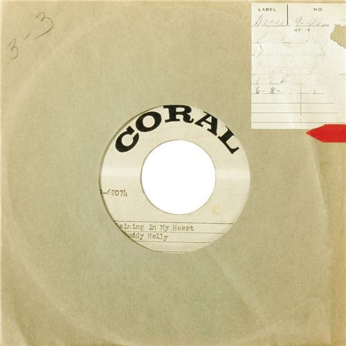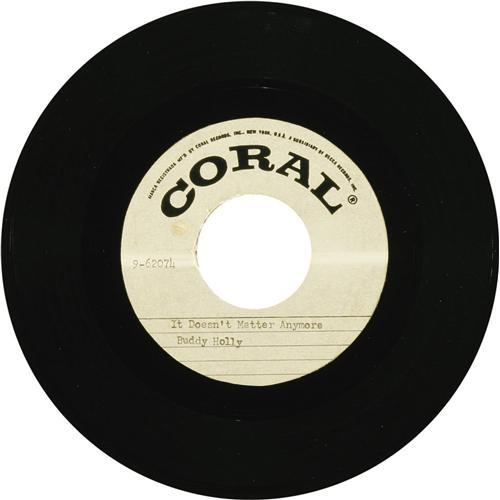 <B>Buddy Holly "I Guess It Doesn't Matter Anymore"/ "Raining In My Heart" 45 Acetate Coral 62074 (1959).</B></I> Recorded shortly before the singer's death, the two-sided hit single was his final recording.The two-sided acetate plays crisply. It looks VG 5, but plays VG-EX 6.<I>From Maria Elena Holly's personal collection.</B></I>