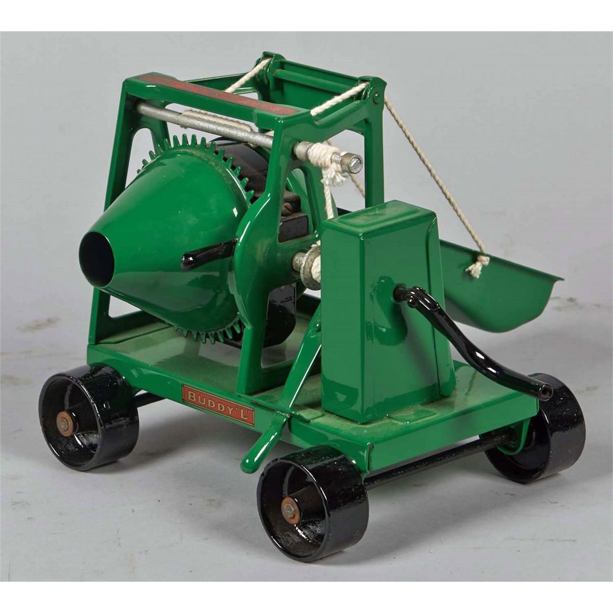 Restored in green and black with red and gold decals. Including one reading Quality Toys by Moline Pressed Steel Co., East Moline, ILL. Condition (Restored). Size 8-1/2" x 9" x 7"