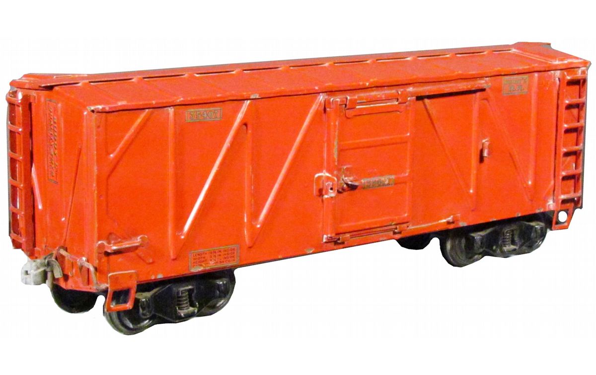1930's Buddy L Pressed Steel Box Car for Outdoor Toy Train Set. Excellent original condition. 22 inches long.
