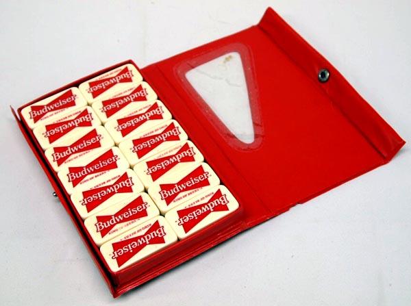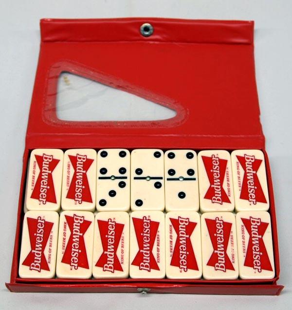 Set of Budweiser Advertising Dominoes, carrying case measures 7.75'' x 4.5'' and domino measures 1'' x 2''. Buyers Pay Actual Shipping and Handling Charges(see terms and conditions for more information).