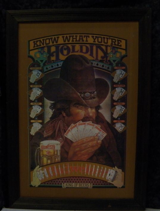 Know What Your Holden Budweiser Advertising wood sign framed> Good for any poker Room displays the value of your hand. Pretty Rare to find this sign in such great condition