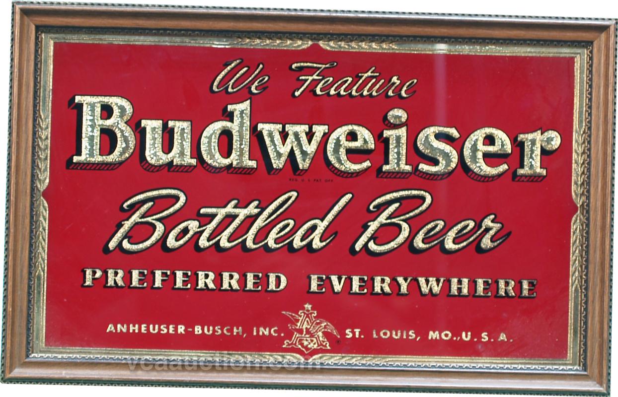 Budweiser Bottled Beer Reverse Glass Sign, in excellent condition in frame - 15" x 9"