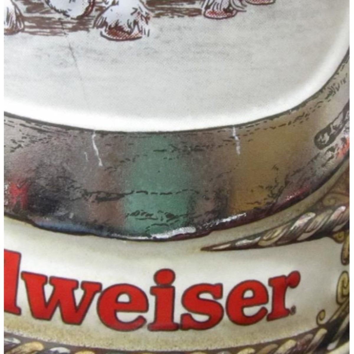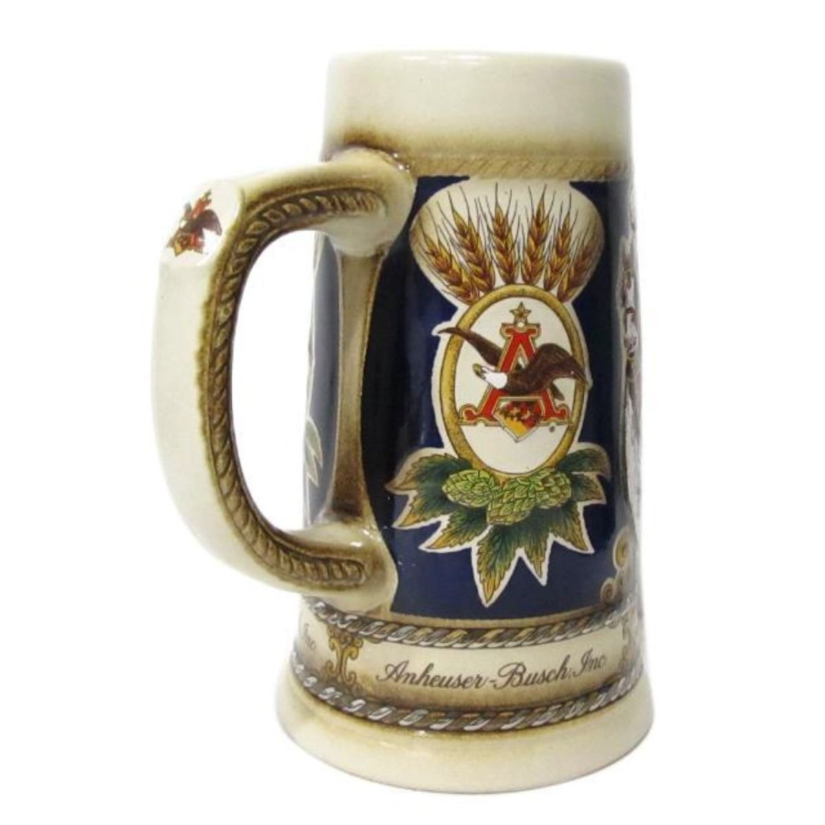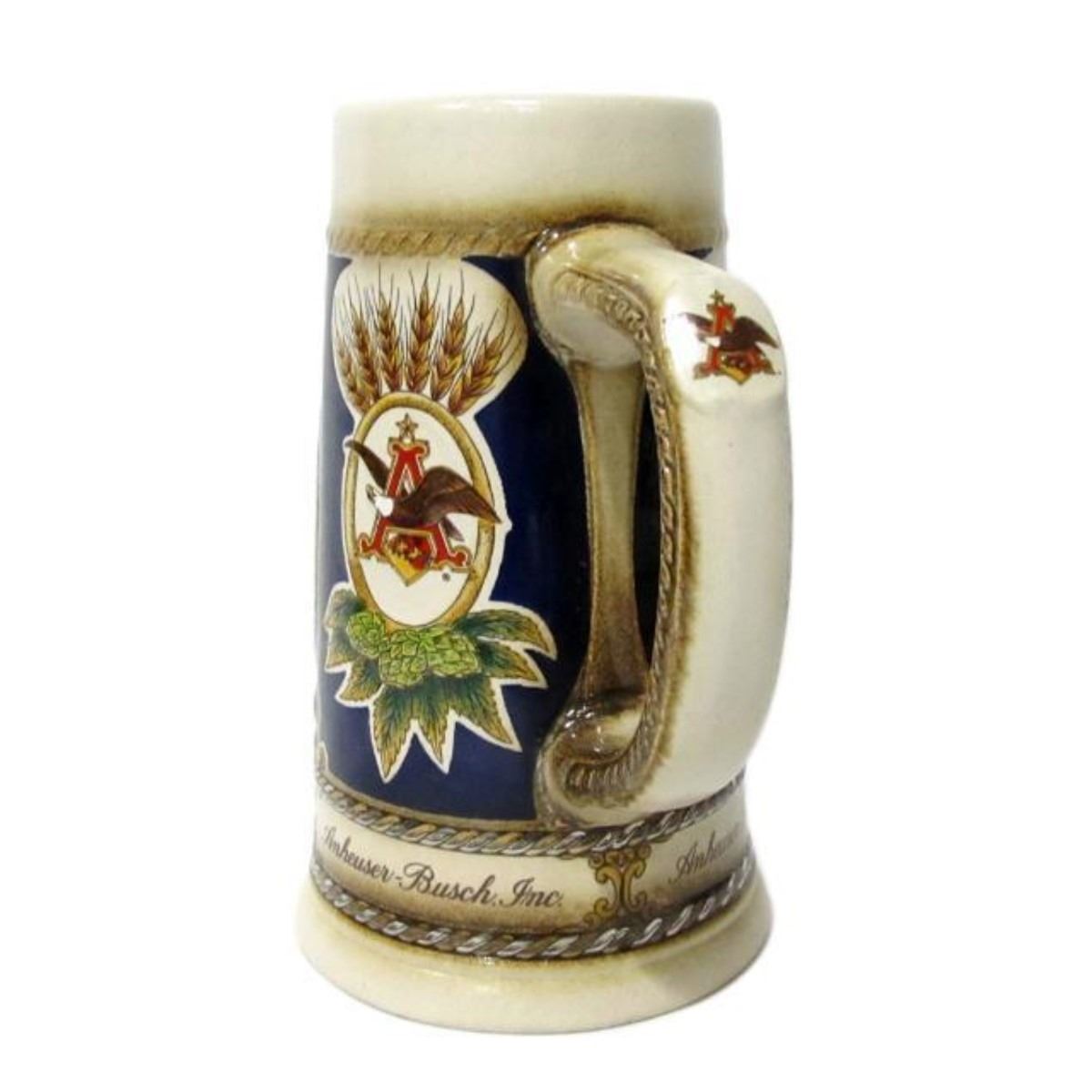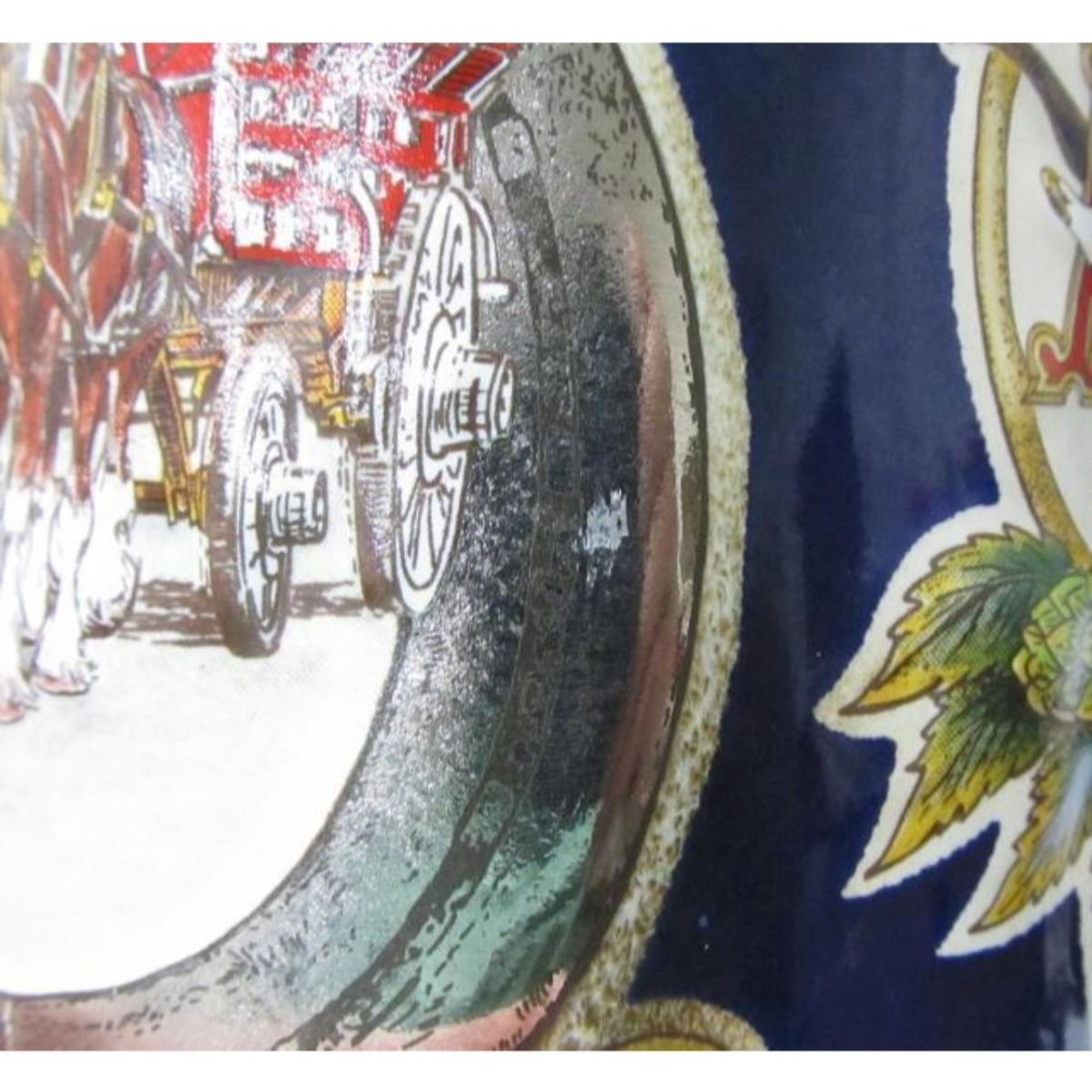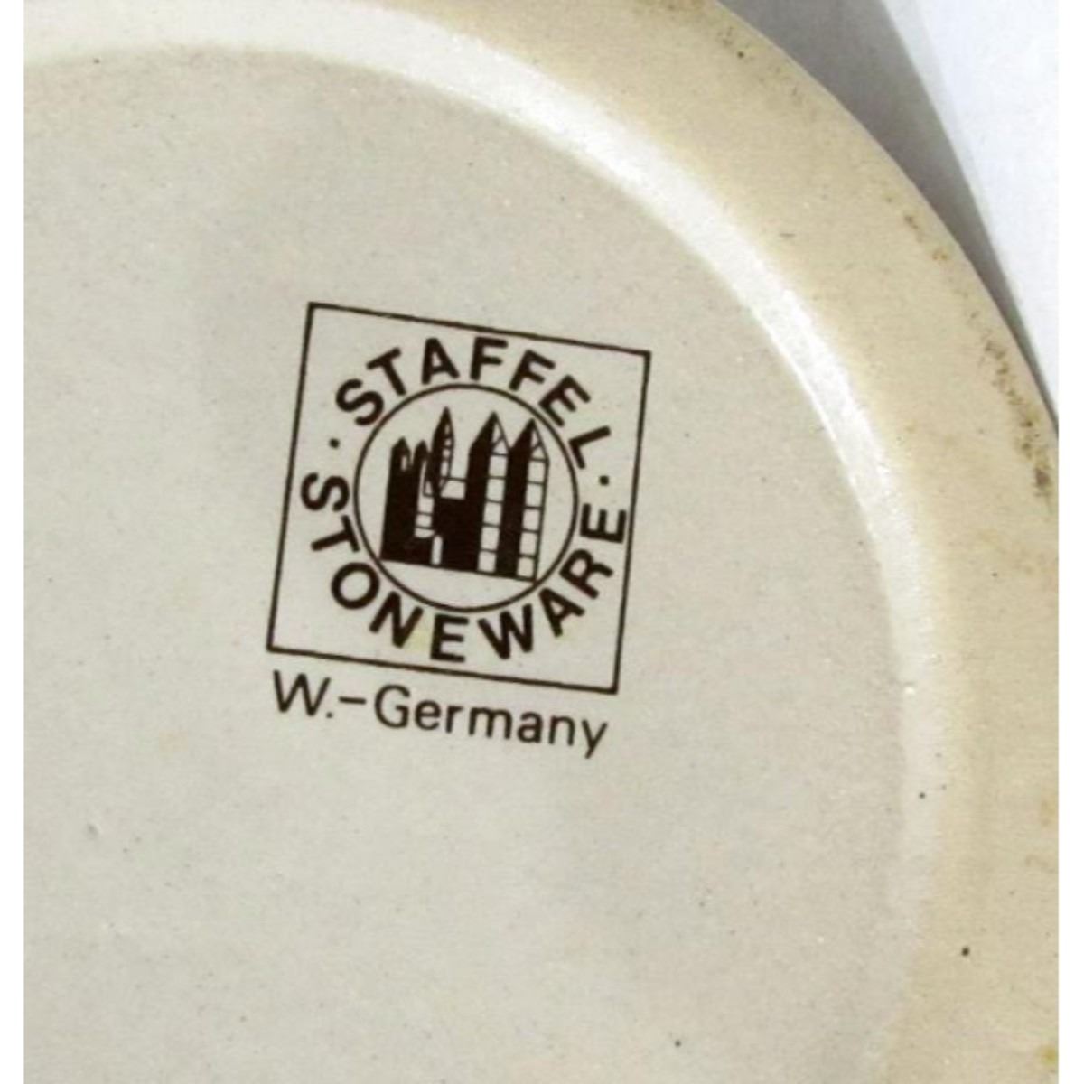 Vintage Budweiser German Staffel Stoneware advertising stein. Features the Budweiser Clydesdales with a metallic horseshoe surrounding them. 6 3/4" H X 4" base diameter. Makers mark - StaffelStoneware West Germany. Good condition.