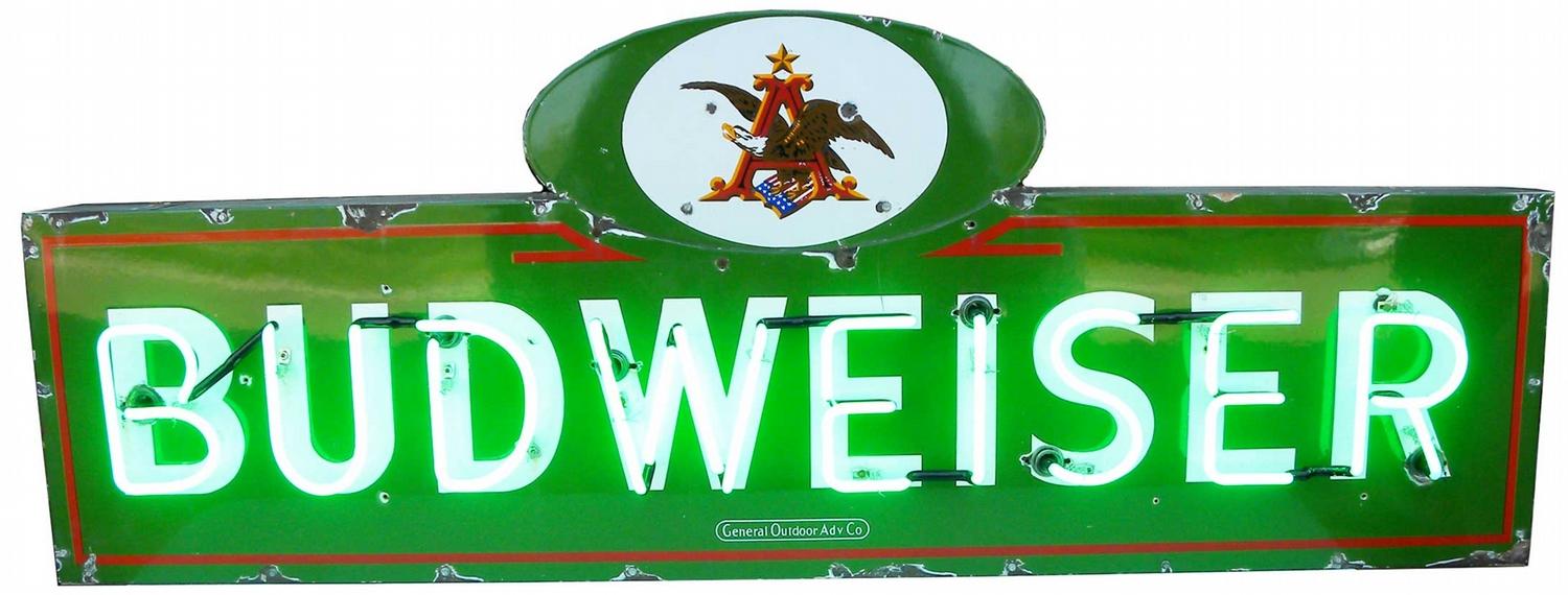 Budweiser Porcelain Neon Can Sign. Several chips around the perimeter otherwise good working condition. 72 X 28 X 9 inches.