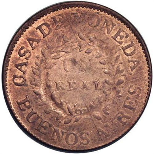 <B>Buenos Aires. Real 1840, </B></I>KM7, MS63 NGC Red & Brown, somewhat crudely produced but virtually fully lustrous and rare in Mint State.