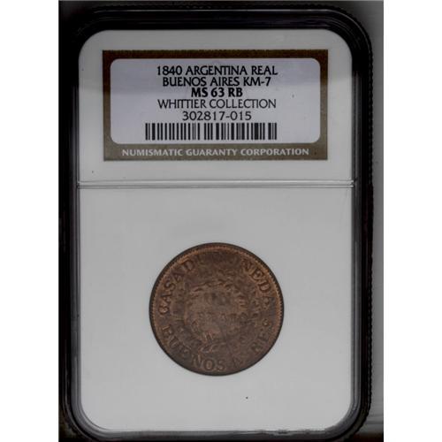 Buenos Aires. Real 1840, KM7, MS63 NGC Red & Brown, som Buenos Aires. Real 1840,