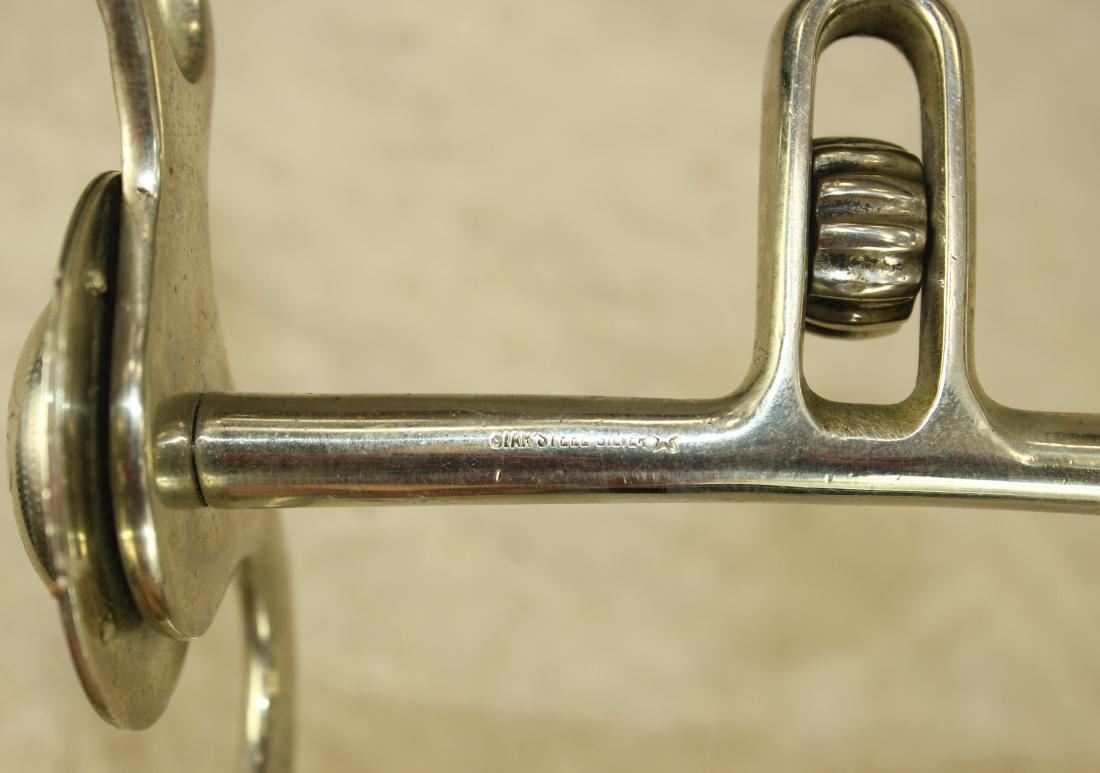 Uncommon Buerman "S" shank bit with hammered shanks and large dome conchos, in mint condition with rein chains.