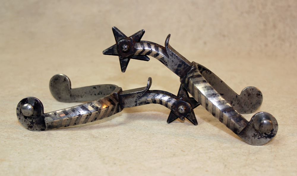 Wonderful pair of double mounted chevrons with pleasing tarnished silver inlay. In near mint condition, and well marked with the early AB star mark.