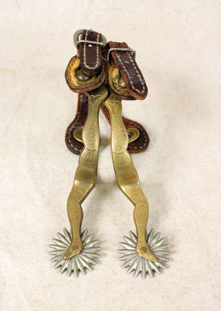 Nice Hercules bronze double gal legs with star steel silver rowels. Nicely marked.