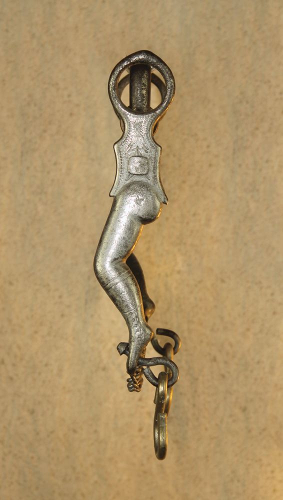 Wonderful, very early gal leg iron bit, well marked and showing much of its original finish.