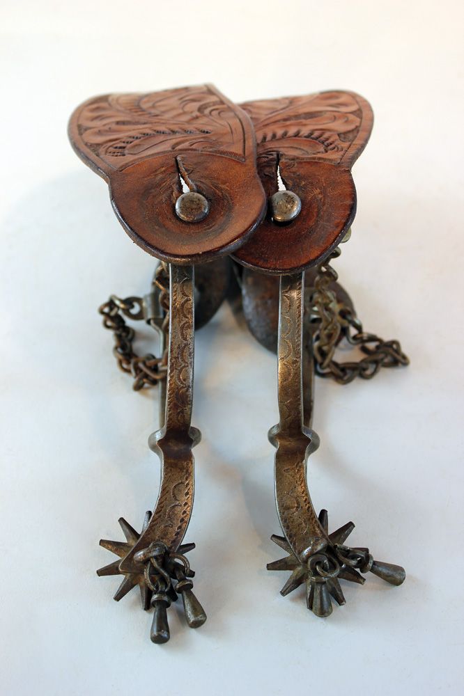 Unusual iron pair, retaining their jinglebobs, in nice condition with original straps.