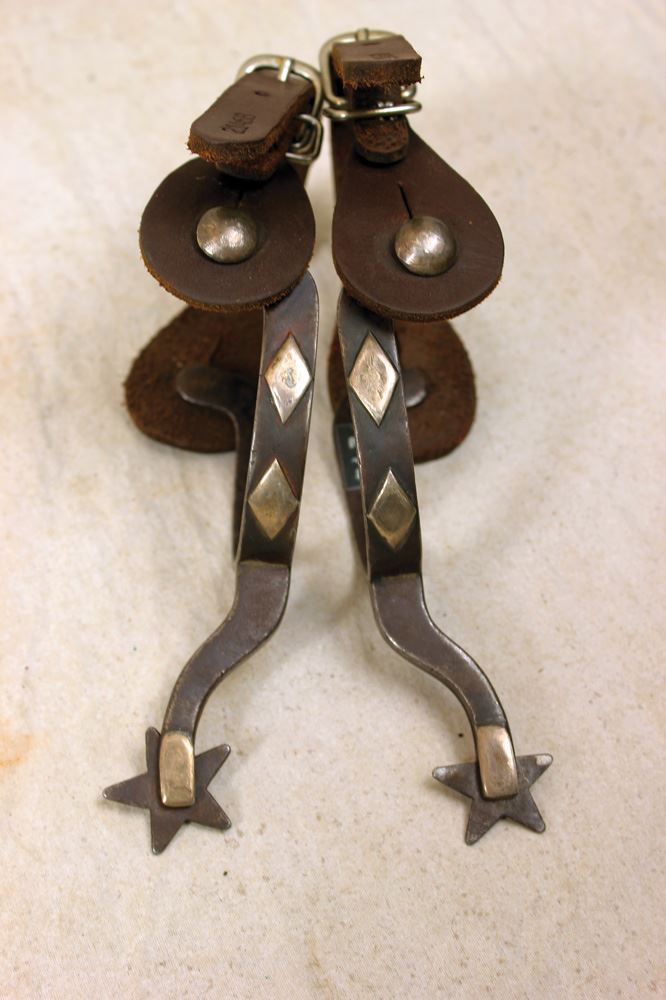 Single mounted spurs with diamonds, early maker's marks and gooseneck shanks.